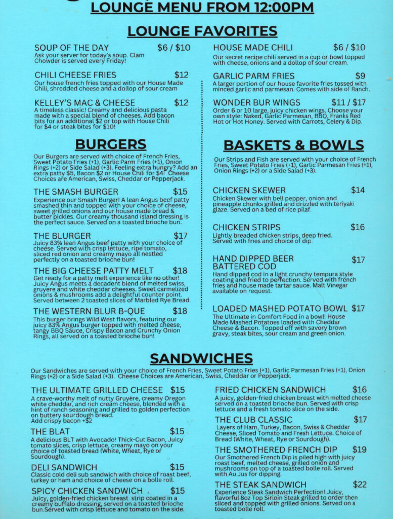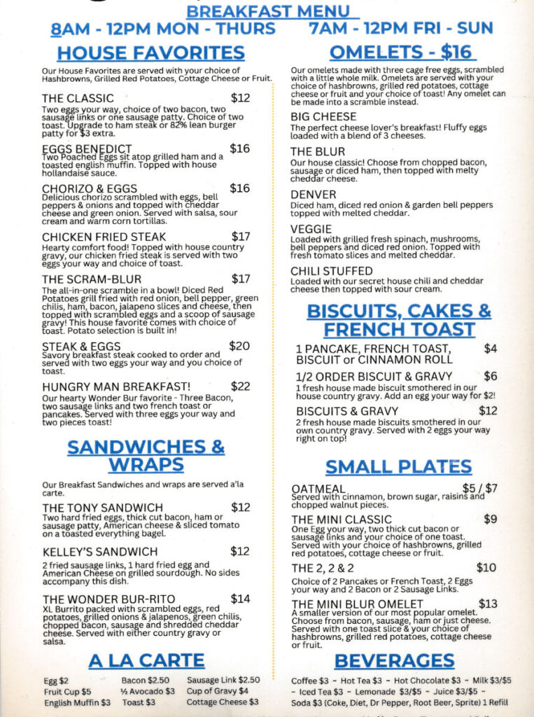 Wonder Bur Cafe & Lounge Menus